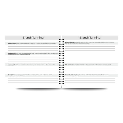Brand, visibility, content, and website planning sections so you stop posting randomly and start showing up strategically