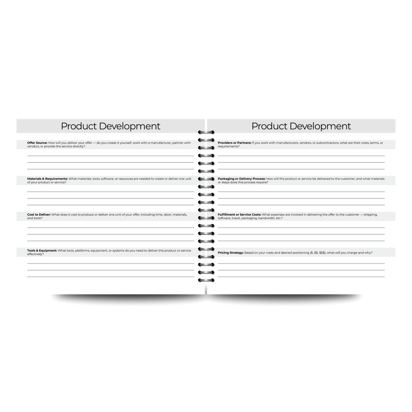 Product development breakdowns that walk you through costs, materials, pricing, fulfillment, and profitability